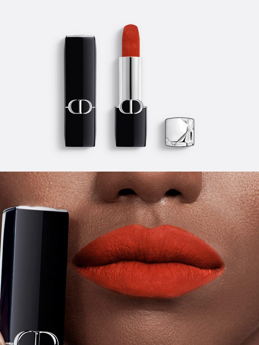 Rouge Dior, the Dior makeup icon, reveals a wide range of shades with 3 unique¹ finishes. The longwear lipstick offers 24 hours of comfort thanks to its formula infused with hydrating floral lip care and a texture that leaves lips feeling soft. The lipstick is housed in an elegant case with a contemporary design.